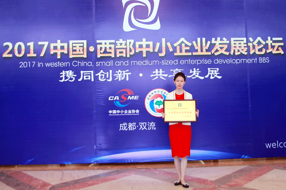 协会授予西婵的“中国十大影响力品牌企业”荣誉牌匾